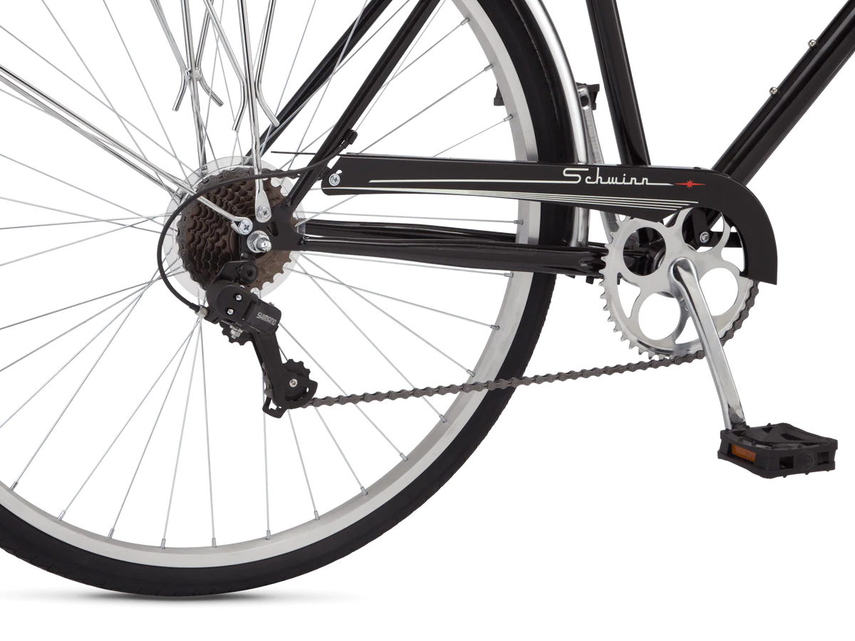 Ride through town in leisure with a Schwinn Huron cruiser bicycle. Perfect for neighborhood rides...