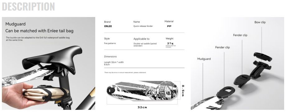 Suitable Front and Rear Bicycle Fender: ENLEE mudguards measure 10.62*5.9 inches and weighs 0.05 pounds....