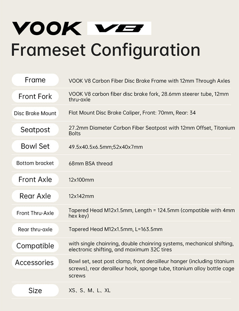 VOOK V8 Frame: An exceptionally cost-effective carbon fiber road bike frame, with a raw frame...
